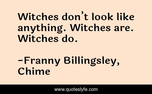 "Franny Billingsley, Chime Quotes." Quoteslyfe.com, 2025. Sun. 07 Dec. 2025. <https://www.quoteslyfe.com/quote/Witches-don-t-look-like-anything-Witches-233833>.