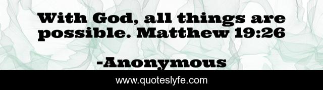 This page presents the quote "With God, all things are possible. Matthew 19:26". Author of this quote is Anonymous. .