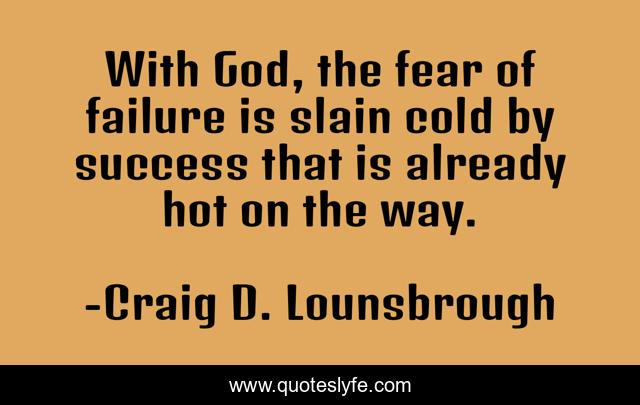 This page presents the quote "With God, the fear of failure is slain cold by success that is already hot on the way.". Author of this quote is Craig D. Lounsbrough. This quote is about jesus-christ, faith, promises, christian, belief, success, god, defeated, christianity,.