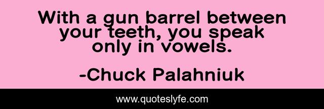 "Chuck Palahniuk Quotes." Quoteslyfe.com, 2025. Mon. 08 Dec. 2025. <https://www.quoteslyfe.com/quote/With-a-gun-barrel-between-your-teeth-178390>.