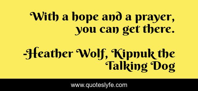 "Heather Wolf, Kipnuk the Talking Dog Quotes." Quoteslyfe.com, 2025. Mon. 08 Dec. 2025. <https://www.quoteslyfe.com/quote/With-a-hope-and-a-prayer-you-114853>.