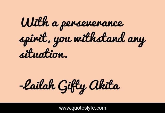 This page presents the quote "With a perseverance spirit, you withstand any situation.". Author of this quote is Lailah Gifty Akita. This quote is about perseverance, confidence, positive, endurance, motivational, optimistic, situation, adversity,.