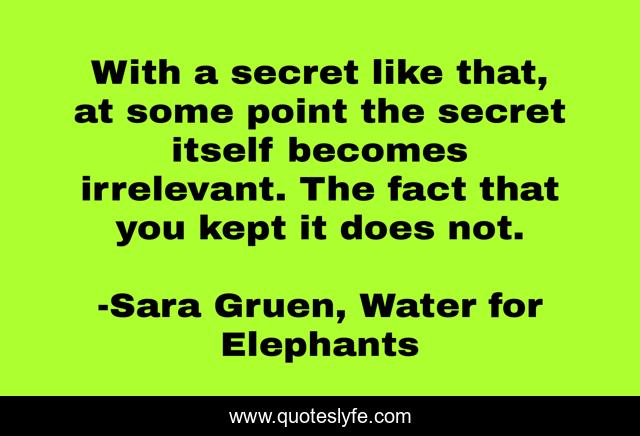 "Sara Gruen, Water for Elephants Quotes." Quoteslyfe.com, 2025. Fri. 05 Dec. 2025. <https://www.quoteslyfe.com/quote/With-a-secret-like-that-at-some-8985>.