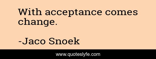 "Jaco Snoek Quotes." Quoteslyfe.com, 2025. Mon. 08 Dec. 2025. <https://www.quoteslyfe.com/quote/With-acceptance-comes-change-130238>.