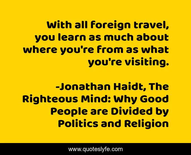 "Jonathan Haidt, The Righteous Mind: Why Good People are Divided by Politics and Religion Quotes." Quoteslyfe.com, 2025. Fri. 05 Dec. 2025. <https://www.quoteslyfe.com/quote/With-all-foreign-travel-you-learn-as-181281>.