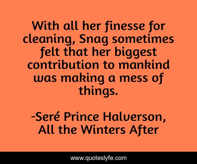 "Seré Prince Halverson, All the Winters After Quotes." Quoteslyfe.com, 2025. Sat. 06 Dec. 2025. <https://www.quoteslyfe.com/quote/With-all-her-finesse-for-cleaning-Snag-223466>.