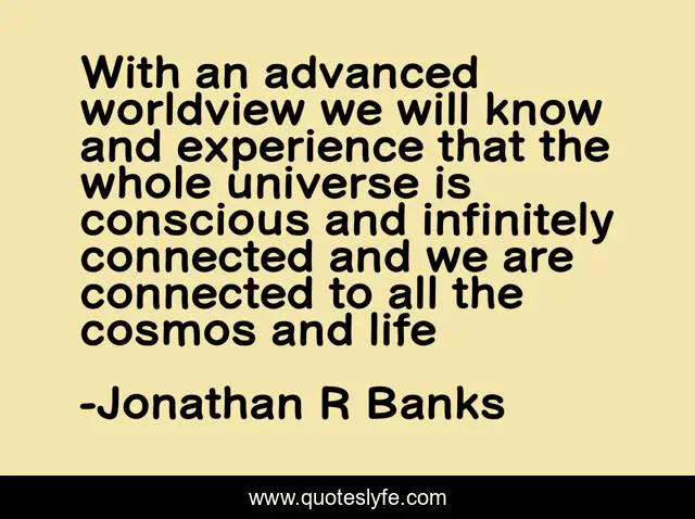 This page presents the quote "With an advanced worldview we will know and experience that the whole universe is conscious and infinitely connected and we are connected to all the cosmos and life". Author of this quote is Jonathan R Banks. This quote is about life, phylosophy, consciousness,.