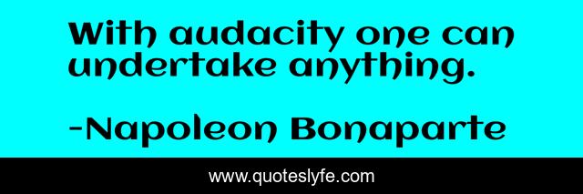 This page presents the quote "With audacity one can undertake anything.". Author of this quote is Napoleon Bonaparte. .