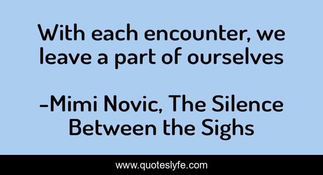 "Mimi Novic, The Silence Between the Sighs Quotes." Quoteslyfe.com, 2025. Fri. 05 Dec. 2025. <https://www.quoteslyfe.com/quote/With-each-encounter-we-leave-a-part-106099>.