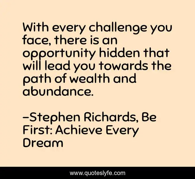"Stephen Richards, Be First: Achieve Every Dream Quotes." Quoteslyfe.com, 2025. Fri. 05 Dec. 2025. <https://www.quoteslyfe.com/quote/With-every-challenge-you-face-there-is-36136>.