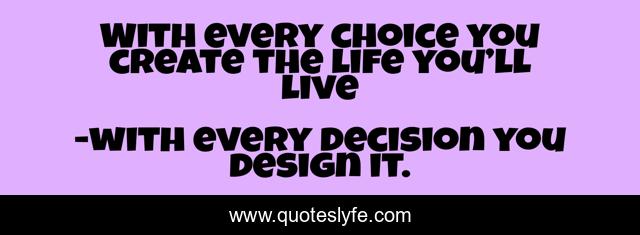 "with every decision you design it. Quotes." Quoteslyfe.com, 2025. Sat. 06 Dec. 2025. <https://www.quoteslyfe.com/quote/With-every-choice-you-create-the-life-19678>.
