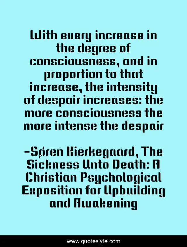"Søren Kierkegaard, The Sickness Unto Death: A Christian Psychological Exposition for Upbuilding and Awakening Quotes." Quoteslyfe.com, 2025. Fri. 05 Dec. 2025. <https://www.quoteslyfe.com/quote/With-every-increase-in-the-degree-of-155577>.