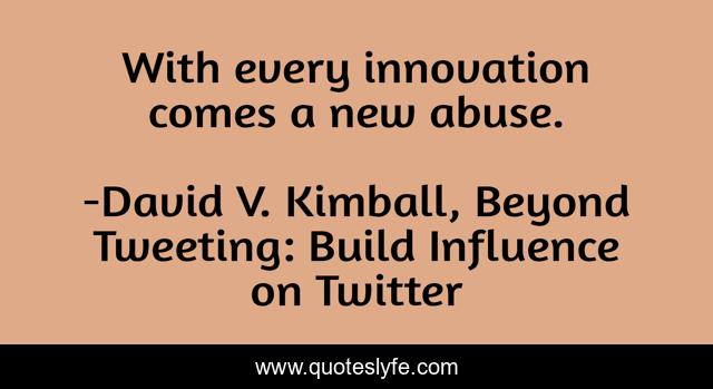 "David V. Kimball, Beyond Tweeting: Build Influence on Twitter Quotes." Quoteslyfe.com, 2025. Tue. 09 Dec. 2025. <https://www.quoteslyfe.com/quote/With-every-innovation-comes-a-new-abuse-90483>.