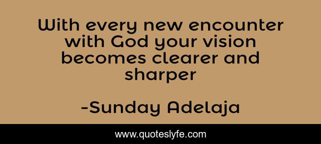 This page presents the quote "With every new encounter with God your vision becomes clearer and sharper". Author of this quote is Sunday Adelaja. This quote is about encounter, clearer, vision,.