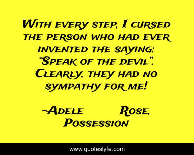 This page presents the quote "With every step, I cursed the person who had ever invented the saying: “Speak of the devil”. Clearly, they had no sympathy for me!". Author of this quote is Adele Rose, Possession. This quote is about devil, alex, fantasy-series, humour, idioms, young-adult-fiction,.