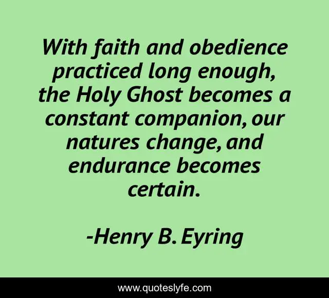 This page presents the quote "With faith and obedience practiced long enough, the Holy Ghost becomes a constant companion, our natures change, and endurance becomes certain.". Author of this quote is Henry B. Eyring. This quote is about endurance, change, long,.