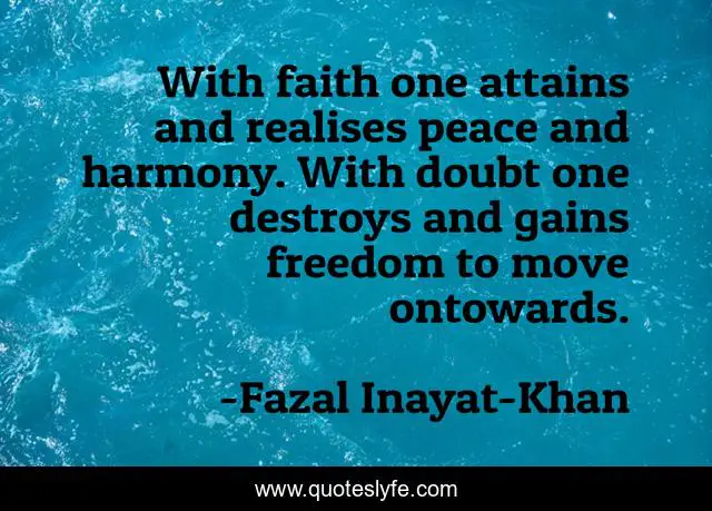 This page presents the quote "With faith one attains and realises peace and harmony. With doubt one destroys and gains freedom to move ontowards.". Author of this quote is Fazal Inayat-Khan. This quote is about sufi, wisdom-inspirational, philosophy,.