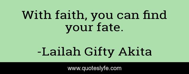 This page presents the quote "With faith, you can find your fate.". Author of this quote is Lailah Gifty Akita. This quote is about faith, destiny, fate, inspirational, enthusiasm, dreams,.