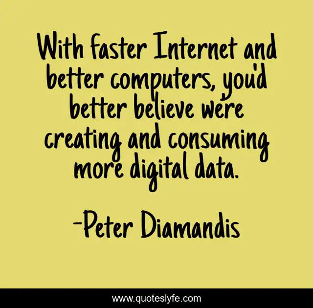 This page presents the quote "With faster Internet and better computers, you'd better believe we're creating and consuming more digital data.". Author of this quote is Peter Diamandis. This quote is about believe, data, internet,.