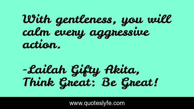 "Lailah Gifty Akita, Think Great: Be Great! Quotes." Quoteslyfe.com, 2025. Fri. 05 Dec. 2025. <https://www.quoteslyfe.com/quote/With-gentleness-you-will-calm-every-aggressive-73831>.