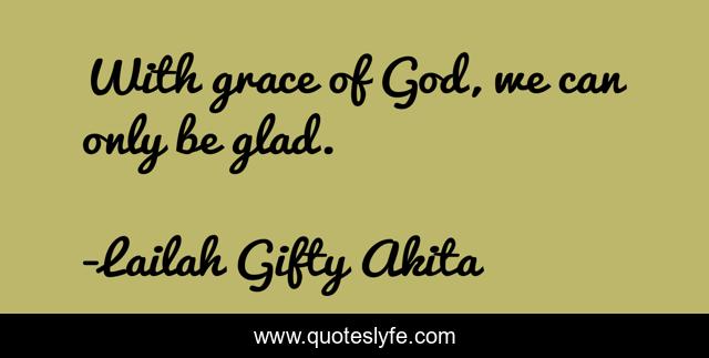 This page presents the quote "With grace of God, we can only be glad.". Author of this quote is Lailah Gifty Akita. This quote is about faith, inspiring, lailah-gifty-akita-affirmations, christian, encouragement, hope, inner-strength, grace, glad,.