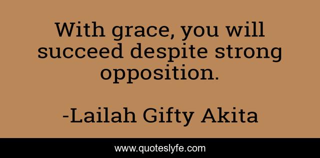 This page presents the quote "With grace, you will succeed despite strong opposition.". Author of this quote is Lailah Gifty Akita. This quote is about success, encouragement, dont-quit, opposition, overcomer, grace,.
