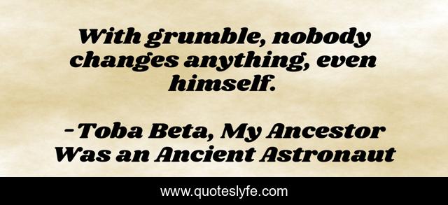 "Toba Beta, My Ancestor Was an Ancient Astronaut Quotes." Quoteslyfe.com, 2025. Sat. 06 Dec. 2025. <https://www.quoteslyfe.com/quote/With-grumble-nobody-changes-anything-even-himself-59685>.