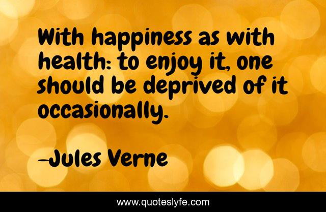 This page presents the quote "With happiness as with health: to enjoy it, one should be deprived of it occasionally.". Author of this quote is Jules Verne. This quote is about enjoy, health,.