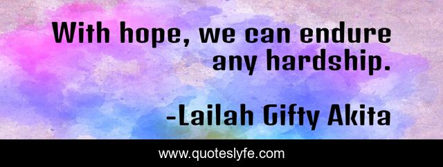 "Lailah Gifty Akita Quotes." Quoteslyfe.com, 2025. Mon. 08 Dec. 2025. <https://www.quoteslyfe.com/quote/With-hope-we-can-endure-any-hardship-19951>.