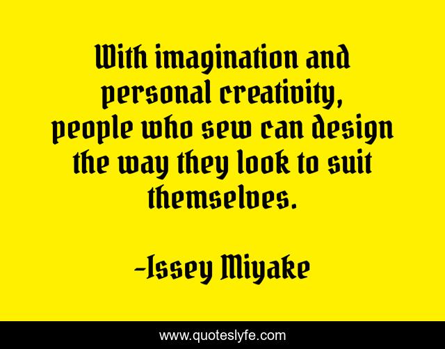 This page presents the quote "With imagination and personal creativity, people who sew can design the way they look to suit themselves.". Author of this quote is Issey Miyake. This quote is about imagination, creativity,.
