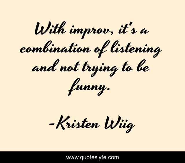 This page presents the quote "With improv, it's a combination of listening and not trying to be funny.". Author of this quote is Kristen Wiig. This quote is about improv, trying, listening,.