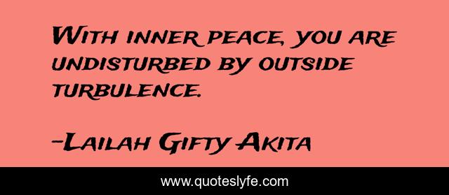This page presents the quote "With inner peace, you are undisturbed by outside turbulence.". Author of this quote is Lailah Gifty Akita. This quote is about wisdom-of-lailah-gifty-akita, turbulence, chaos, inner-peace,.