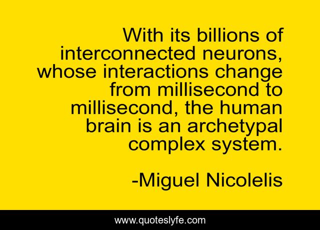 This page presents the quote "With its billions of interconnected neurons, whose interactions change from millisecond to millisecond, the human brain is an archetypal complex system.". Author of this quote is Miguel Nicolelis. This quote is about human brain, brain, human,.