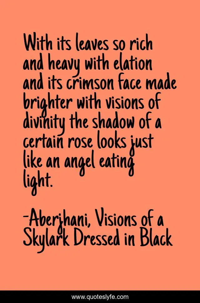 "Aberjhani, Visions of a Skylark Dressed in Black Quotes." Quoteslyfe.com, 2025. Tue. 09 Dec. 2025. <https://www.quoteslyfe.com/quote/With-its-leaves-so-rich-and-heavy-119073>.