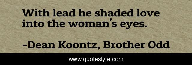 This page presents the quote "With lead he shaded love into the woman's eyes.". Author of this quote is Dean Koontz, Brother Odd. This quote is about pencils, art, artist, emotions, jacob, portrait, drawing, odd-thomas,.