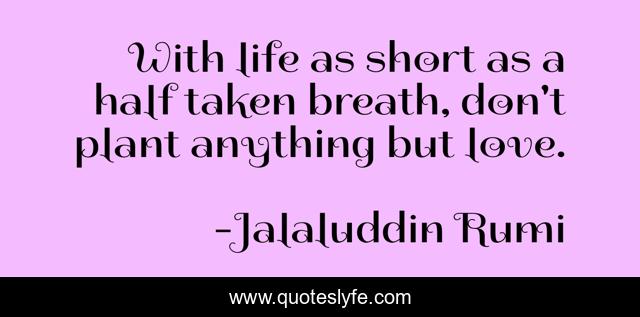 This page presents the quote "With life as short as a half taken breath, don't plant anything but love.". Author of this quote is Jalaluddin Rumi. This quote is about religion, life-and-living, islam,.