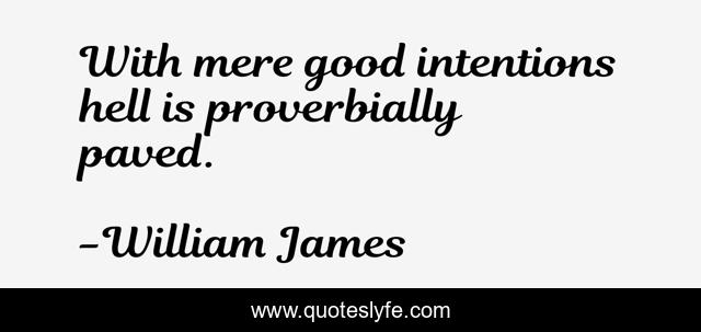 This page presents the quote "With mere good intentions hell is proverbially paved.". Author of this quote is William James. This quote is about going, getting,.