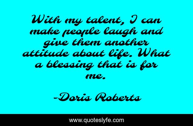 This page presents the quote "With my talent, I can make people laugh and give them another attitude about life. What a blessing that is for me.". Author of this quote is Doris Roberts. This quote is about me, life, laugh,.