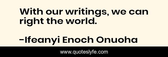 "Ifeanyi Enoch Onuoha Quotes." Quoteslyfe.com, 2025. Fri. 05 Dec. 2025. <https://www.quoteslyfe.com/quote/With-our-writings-we-can-right-the-187043>.