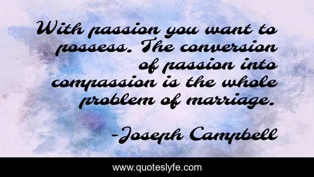 This page presents the quote "With passion you want to possess. The conversion of passion into compassion is the whole problem of marriage.". Author of this quote is Joseph Campbell. .