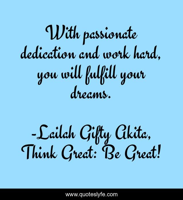 "Lailah Gifty Akita, Think Great: Be Great! Quotes." Quoteslyfe.com, 2025. Sat. 06 Dec. 2025. <https://www.quoteslyfe.com/quote/With-passionate-dedication-and-work-hard-you-34607>.