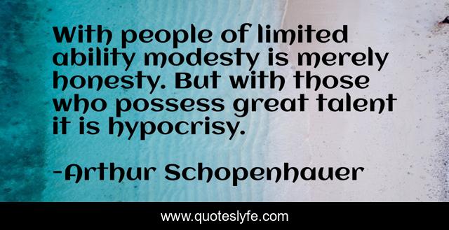 This page presents the quote "With people of limited ability modesty is merely honesty. But with those who possess great talent it is hypocrisy.". Author of this quote is Arthur Schopenhauer. This quote is about talent, honesty, people,.