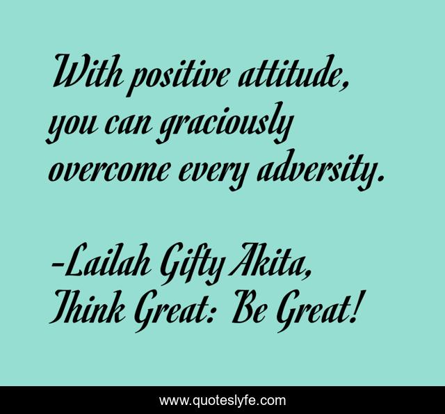 "Lailah Gifty Akita, Think Great: Be Great! Quotes." Quoteslyfe.com, 2025. Mon. 08 Dec. 2025. <https://www.quoteslyfe.com/quote/With-positive-attitude-you-can-graciously-overcome-78231>.