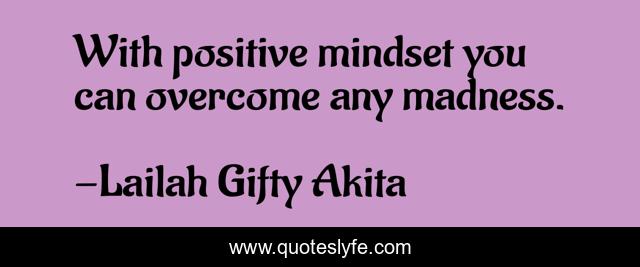 This page presents the quote "With positive mindset you can overcome any madness.". Author of this quote is Lailah Gifty Akita. This quote is about positive, mind-power, confidence, inspirational, enthusiasm,.