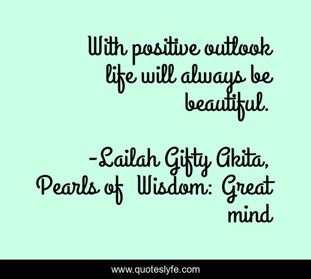 "Lailah Gifty Akita, Pearls of Wisdom: Great mind Quotes." Quoteslyfe.com, 2025. Mon. 08 Dec. 2025. <https://www.quoteslyfe.com/quote/With-positive-outlook-life-will-always-be-95201>.