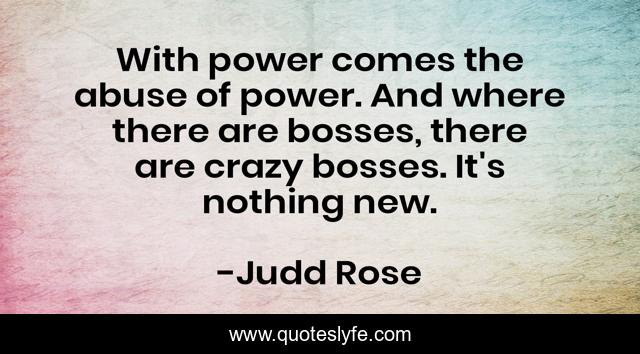 This page presents the quote "With power comes the abuse of power. And where there are bosses, there are crazy bosses. It's nothing new.". Author of this quote is Judd Rose. This quote is about nothing, new, crazy,.