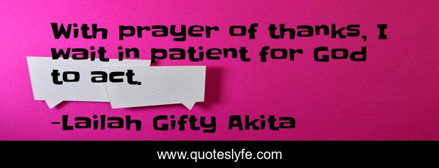 This page presents the quote "With prayer of thanks, I wait in patient for God to act.". Author of this quote is Lailah Gifty Akita. This quote is about christian-life, prayer, answered-prayers, wait,.