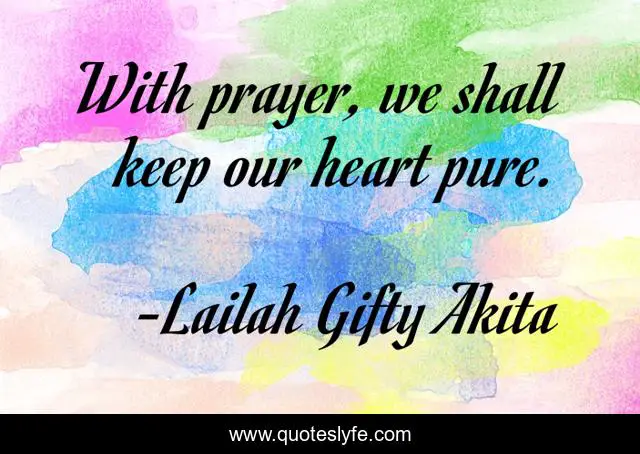 This page presents the quote "With prayer, we shall keep our heart pure.". Author of this quote is Lailah Gifty Akita. This quote is about faith, clean-heart, plead, purity, prayer, praying,.