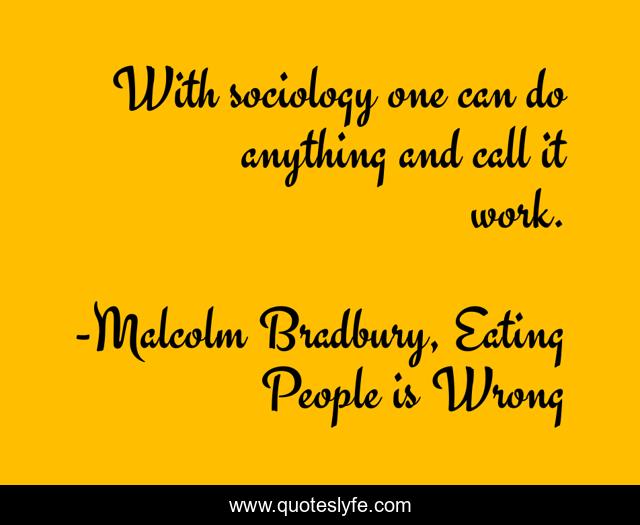 "Malcolm Bradbury, Eating People is Wrong Quotes." Quoteslyfe.com, 2025. Mon. 08 Dec. 2025. <https://www.quoteslyfe.com/quote/With-sociology-one-can-do-anything-and-257018>.