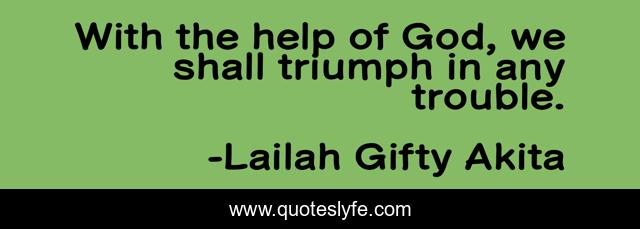 This page presents the quote "With the help of God, we shall triumph in any trouble.". Author of this quote is Lailah Gifty Akita. This quote is about troubles, dont-give-up, gods-help, self-help, overcomer, triumph,.